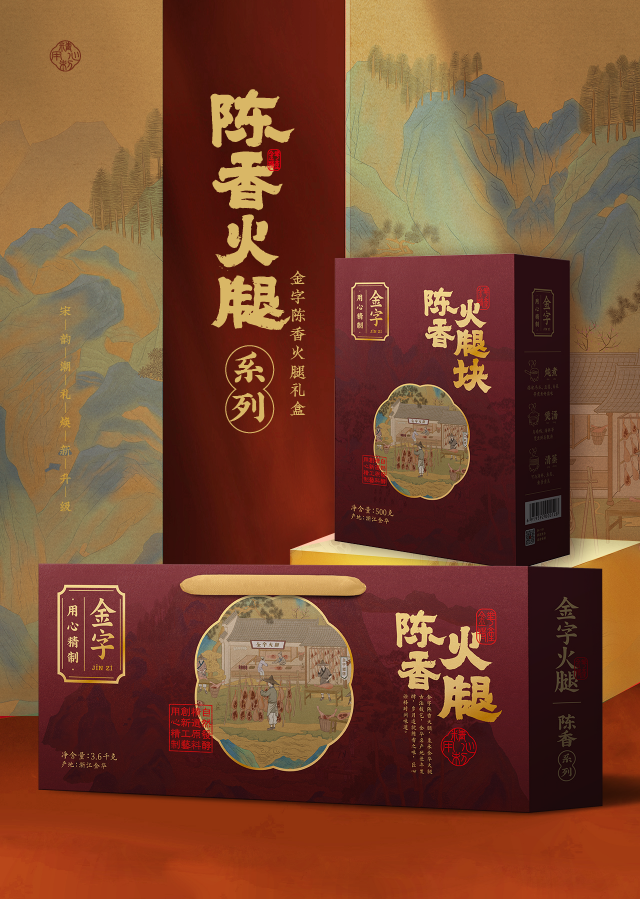 將火腿美食文化演繹出新國(guó)潮,“興于宋”的文化感、“宋之美”的價(jià)值感、“宋之韻”的精致感,煥新系列包裝最終呈現(xiàn)“宋”之有禮的全新理念。