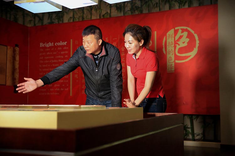 在火腿博覽館取景的過程中,主持人對火腿制作工藝和火腿的造型產(chǎn)生了濃厚的興趣:修胚、上鹽、洗曬、整形、發(fā)酵、聞香等工序不但精細(xì)且充滿了儀式感。陳師傅向她介紹:傳統(tǒng)火腿制作工藝工序多達(dá)36道,金字火腿遵循古法工藝制作,保證金字出產(chǎn)的每一條腿都是“復(fù)古”的“美味腿“。為什么說是美味腿?在金字火腿的中國火腿博覽館內(nèi),欄目組對著一桌的仿真火腿菜肴大呼驚嘆,忍不住都想拿起筷子吃上兩塊。