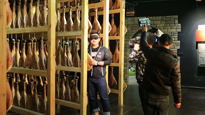 浙江第一美食類電視欄目《廚星高照》的主持人陳黃臻號稱美食小霸王,肉食主義捍衛者。來到巴瑪火腿的第一件事就是游覽展示了各種火腿文化的世界火腿博覽館,在這里黃臻不僅了解了世界各地的火腿品種,而且還展示了盲眼摸腿的技藝,令巴瑪火腿的工作人員也是連連贊賞。