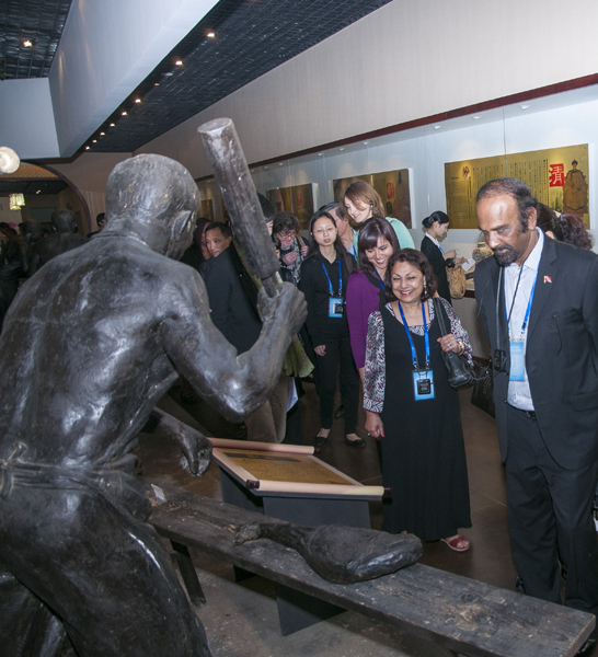 “Jinhua ham is so magical”,”This is delicious”“Good,Good”······5月9日上午,在 由金字興建的國內(nèi)唯一的中國火腿博覽館及世界火腿博覽館場館內(nèi)異常熱鬧,一聲聲包含著好奇、驚嘆、稱贊的英文不絕于耳。原來,是來自英國、湯加、毛里求斯等20國駐華使節(jié)50余人訪問團在參觀考察。